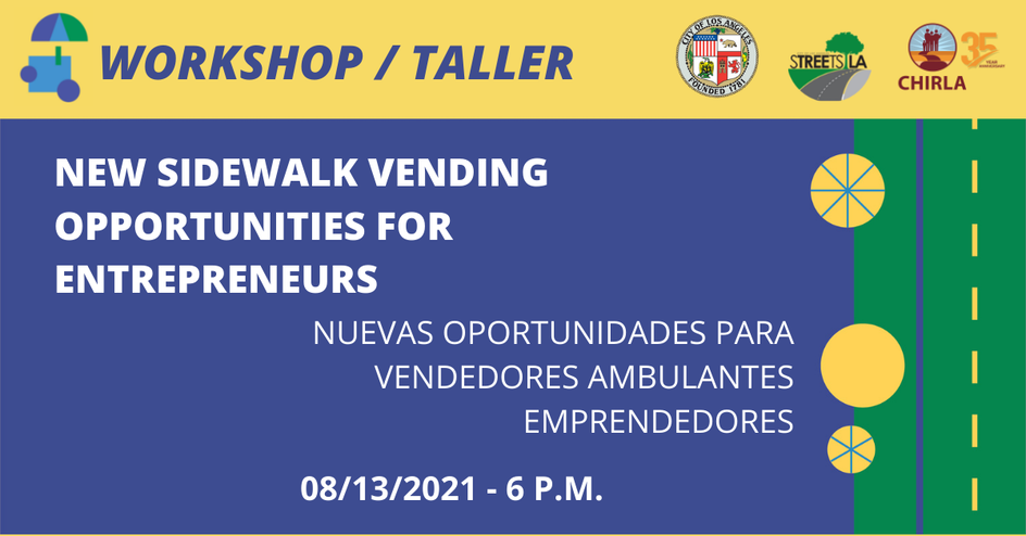Zoom Virtual EventNEW SIDEWALK VENDING OPPORTUNITIES FOR ENTREPRENEURS / NUEVAS OPORTUNIDADES PARA VENDEDORES AMBULANTES EMPRENDEDORES Did you know that street vending is NOW legal in Los Angeles? Join us in our next online workshop (Zoom) and learn about... Know the necessary requirements to obtain a street vendor's permit to sell essential items or your special food. Learn […]